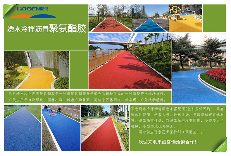 簡介: 彩色透水冷拌瀝青聚氨酯膠是用一種聚氨酯高分子聚合物與石子調(diào)和的一種新型透水地坪材料。廣泛應(yīng)用于市政綠道、園林小路、城市廣場路面、高檔住宅小區(qū)休閑道、停車場、戶外運(yùn)動場所。彩色透水冷拌瀝青顏色豐富靚麗(色彩多樣可選),具有透水性能高、承載力強(qiáng)、散熱性好,是海綿城市首選材料。作為透氣新型海綿城市材料,透氣透水、抗壓強(qiáng)度好、透水系數(shù)高,不僅美化路面還給原始瀝青道路提供了豐富的顏色組合方案,施工高效便捷,對施工場地沒有限制,不需要大型機(jī)械,小型場地也可施工。
