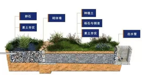 主要作用是延緩短時(shí)間內(nèi)形成的雨水徑流量。比如說,通過微地形調(diào)節(jié),讓雨水慢慢地匯集到一個(gè)地方,“滯”可以延緩形成徑流峰值,避免積水?dāng)起來就導(dǎo)致的內(nèi)澇。